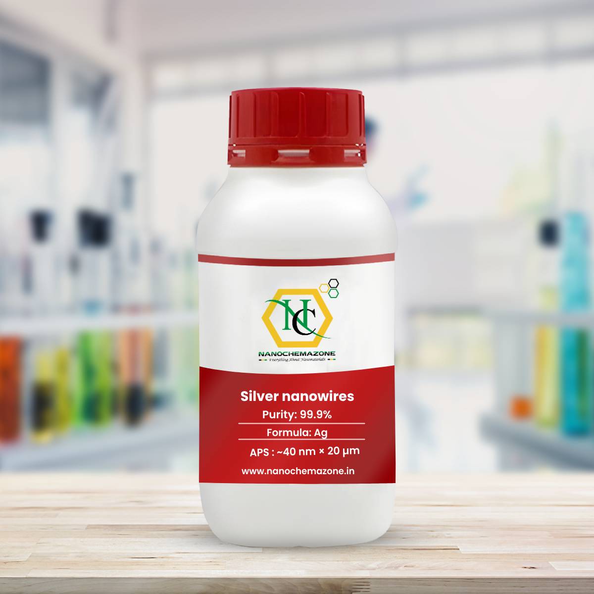 Silver (Ag) Nanowires are high-aspect-ratio nanostructures with ~40 nm diameter and lengths over 20 microns, suspended in ethanol (1g in 25ml). These grey-colored nanowires are widely used in emerging technologies such as flexible displays, solar cells, touch screens, and as replacements for indium tin oxide (ITO).